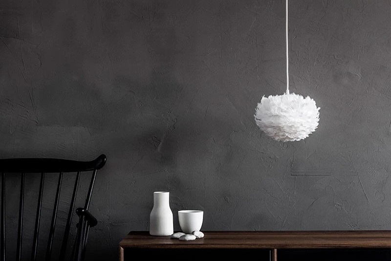 Luxusní závěsná lampa ze série EOS. Lampa je vyrobena z pravého husího peří. Krásná malá závěsná lampa, která vynikne v každé místnosti, ideální jako doplňkové svítidlo, svítidlo do ložnice či malých prostorů. Uvnitř je bílá kovová konstrukce, která tvoří rám čím dotváří vzhled. Stínítko lampy je vyrobeno z 900ks pravého peří. To je uchyceno na měkkém potahu, pro lepší údržbu. Závěsný kabel, který je dlouhý až 200cm, je buď v bílé nebo v černé barvě. Můžete si ho zkrátit podle potřeby. Zkombinujte si ji se stolovou nebo stojanovou lampou ze série.