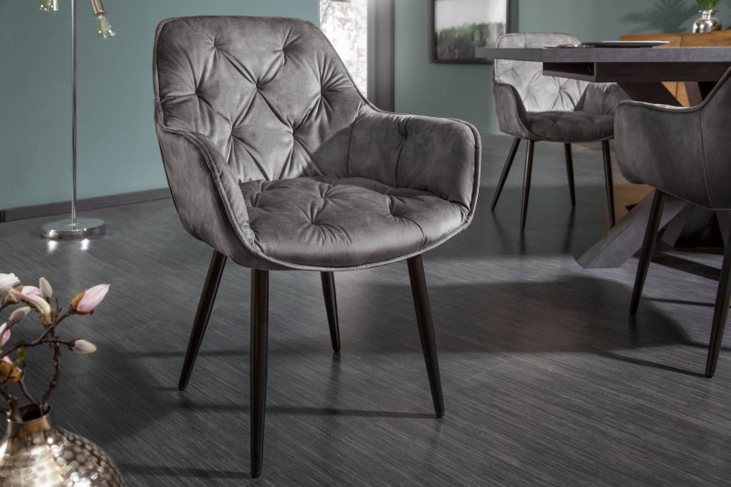 Designová stolička ze série Malibu. Židle je zajímavá svým provedením a tvarem. Tvarovaný sedák s područkami vás pohodlně usadí. Jemná linie opěradla přechází do boků, přičemž zajišťuje příjemně komfortní sezení. Dekorativní prošívání na opěradle a opěrkách. Provedení v sametu v šedo-zelené barvě, které je příjemné na dotek. Konstrukce je z kovu a proto je pevná. Nohy židle jsou z kovu v černém provedení. Krásná židle do vaší kuchyně nebo jídelny, vynikne však i ve vaší kanceláři či v pracovně.