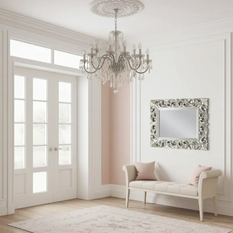 Designové zrcadlo v barokním stylu ze série Bonder. Luxusní barokní ornamenty zdobí krásný zrcadlový rám. Toto zrcadlo se elegantně hodí nejen do moderní obývacího pokoje nebo chodby, s jistotou vynikne v každé místnosti. Rám je konstrukčně vyroben ze dřeva a ornamenty z pevné PU. Barva je zajímavá tím, že je nanášena ručně pomocí stříbrných pásků a upravována tak, aby působila starým dojmem. Proto má zrcadlo jemné tmavé šmouhy jakoby bylo celé roky používané. Tato stará patina se používá na různých površích a je stále oblíbená. Zrcadlo můžete zavěsit vodorovně i svisle na každý typ stěny pomocí háčků uchycených na zadní straně. Zrcadlo je možne zavěsit iv koupelně, nesmí však přijít do přímého styku s vodou. Elegantně vynikne v každé místnosti.